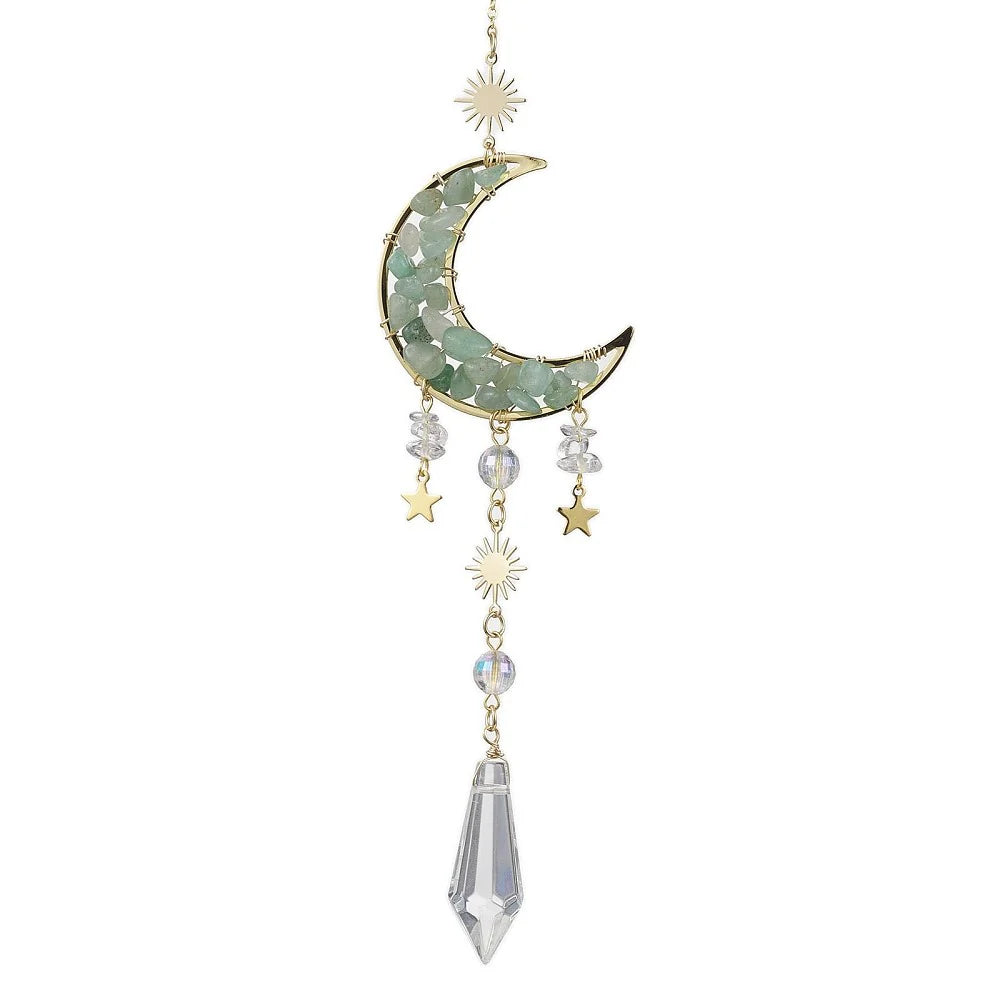 Moon, Sun and star charms with Glass Pendant with Green Aventurine chips