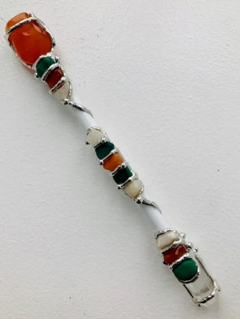 The Combination of these stones chosen are to compliment the positive qualities and dissipate the negative expression.
