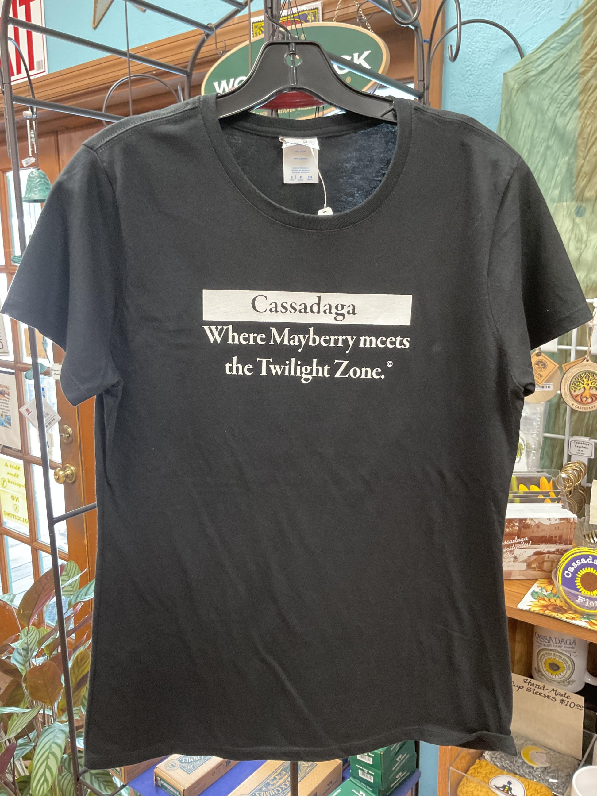 Cassadaga: Where Mayberry Meets the Twilight Zone T- shirt - Women's Cut - Black